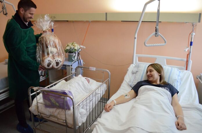 Djevojčica Mila Bašić rođena je jutros u 5 sati i 10 minuta u osječkom KBC-u. Prvu osječku bebu i njezinu majku Tihanu posjetio je gradonačelnik Ivan Radić.