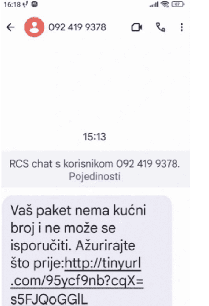 – SMS porukama širi se lažna obavijest o nemogućnosti dostave paketa zbog nepotpunih informacija. Obavijest o nemogućnosti dostave paketa samo je jedna u nizu pokušaja prijevara koje su se pojavile u zadnjih nekoliko godina, a uključuju i lažne nagradne igre, humanitarne akcije, lažne poveznice za plaćanje i preuzimanje pošiljaka, rasprodaje neuručenih paketa te prijevare vezane uz internetske oglasnike, izvijestili su.