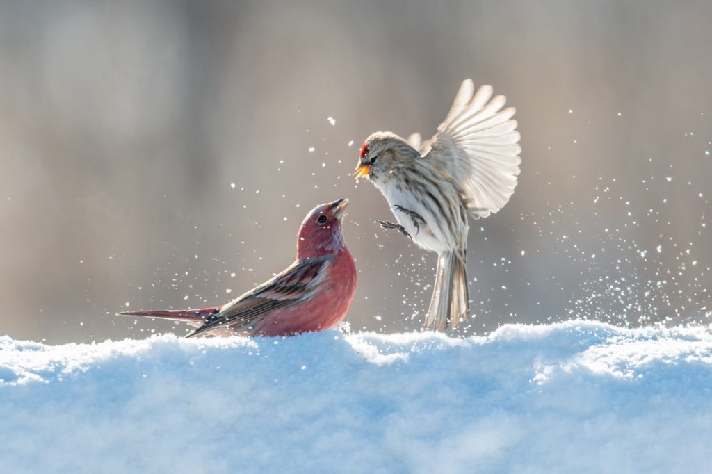 Šumske ptice snimljene su na farmi u Suihua, u pokrajini Heilongjiang, kako traže hranu i spariraju na suncu. Ne pokazujući strah od hladnoće, ptice su mahale krilima i širile pandže, prskajući snijeg na sve strane. Stvorile su sliku zimske vitalnosti u sjeveroistočnoj Kini.