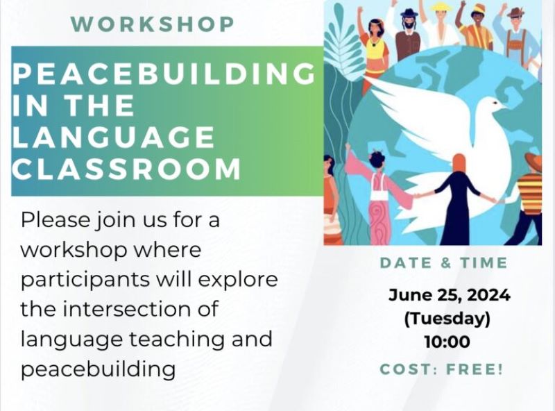American Corner Gradske i sveučilišne knjižnice Osijek organizira radionicu za nastavnike jezikâ “Peacebuilding in the Language Classroom”. Radionica će se održati u utorak, 25. lipnja 2024., s početkom u 11.00 sati u prostoru American Cornera Osijek, Europske avenije 24. Radionicu će voditi Kari Naumova i Elisabeth Nampthor, a namijenjena je prvenstveno nastavnicima engleskoga jezika. Voditeljice radionice ističu da su njihovi primjeri primjenjivi na sve jezike te su dobrodošli svi zainteresirani predavači.