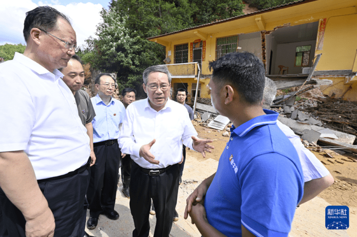 Li je posjetio dva poplavom pogođena sela pored grada Zixinga, u jednom od područja najviše pogođenih intenzivnim kišama izazvanim tajfunom, kako bi se informirao o napretku pomoći nakon katastrofe i razmjerima štete.
