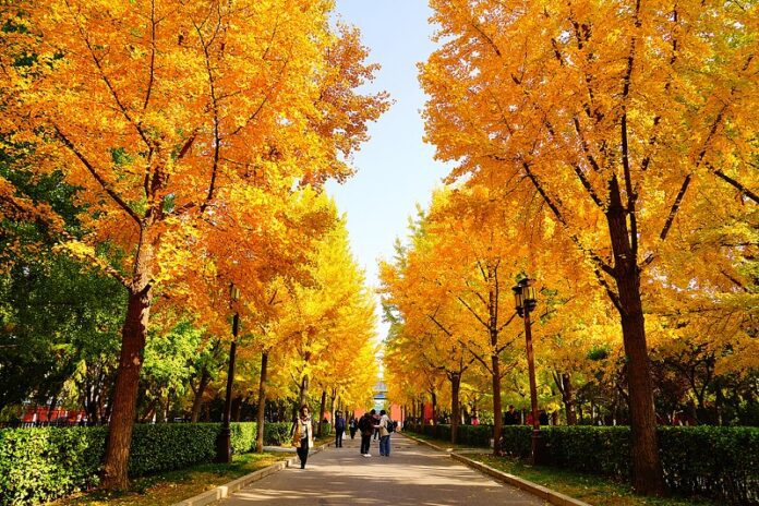 Dok Peking polako ulazi u hladnu jesen, stabla ginka diljem grada su svoju zelenu boju zamijenila zlatnožutom. Kada ovo lišće jarke “zlatne” boje pada s drveća, nalikuje leptirima koji plešu, stvarajući osebujan prizor u kontrastu s drevnim građevinama u pozadini.