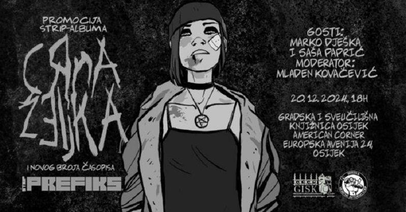 Udruga Hrvatski autorski strip i Gradska i sveučilišna knjižnica Osijek, u petak, 20. prosinca 2024., s početkom u 18.00 sati, organiziraju predstavljanje stripa pod nazivom “Crna Željka“, autora Marka Dješke. O stripu će, u prostoru American Cornera, govoriti autor Marko Dješka i urednik izdanja Saša Paprić, uz moderiranje Mladena Kovačevića.