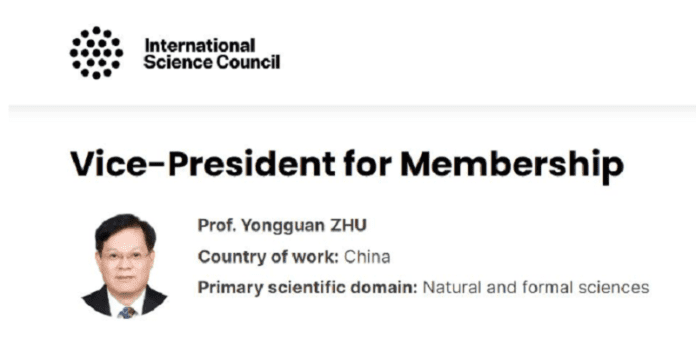 Kineski znanstvenik Zhu Yongguan izabran je za potpredsjednika za članstvo u Međunarodnom znanstvenom vijeću, prema izvješću Kineskog udruženja za znanost i tehnologiju.