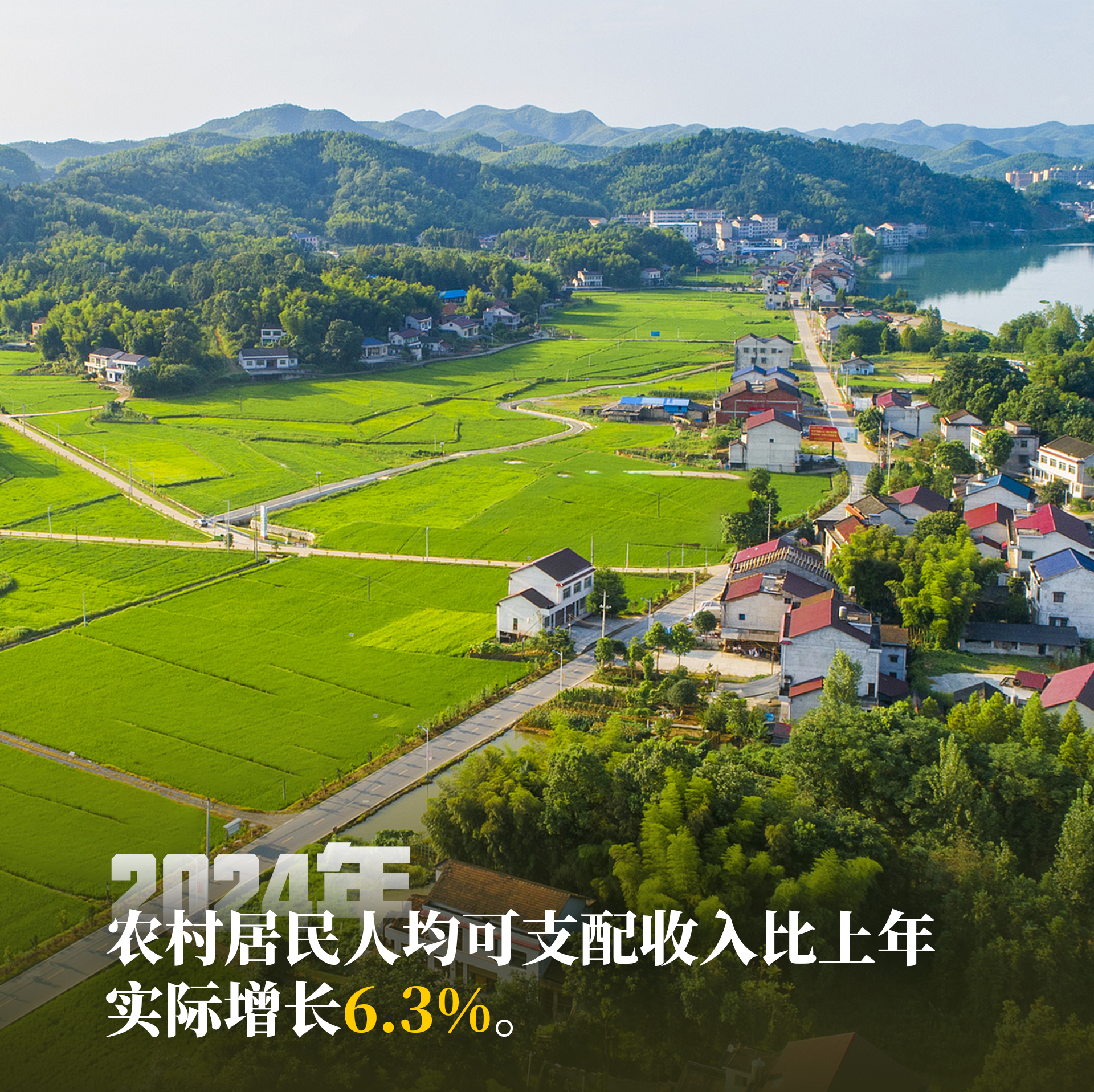U 2024. godini, godišnji prosječan prihod po glavi stanovnika u ruralnim područjima dostigao je 23119 juana. Ako uračunamo inflaciju, to je za 6,3 % više u usporedbi s prethodnom godinom. Rast prihoda stanovništva u okruzima u kojima je relativno nedavno iskorijenjeno siromaštvo u protekle četiri godine bio je brži od prosječnog rasta prihoda stanovništva ruralnih područja cijele Kine.