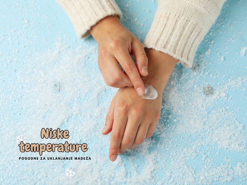 Zimi nosimo dugotrajnu i slojevitiju odjeću, što omogućuje lakše prekrivanje tretiranog područja. Na taj način štitimo osjetljivu kožu od sunčevog zračenja, ali i od vanjskih nadražaja poput prljavštine i bakterija. U ljetnim mjesecima, kada je koža više izložena, puno je teže sakriti područja na kojima su uklonjeni madeži, što može rezultirati neugodnostima ili usporenim oporavkom.