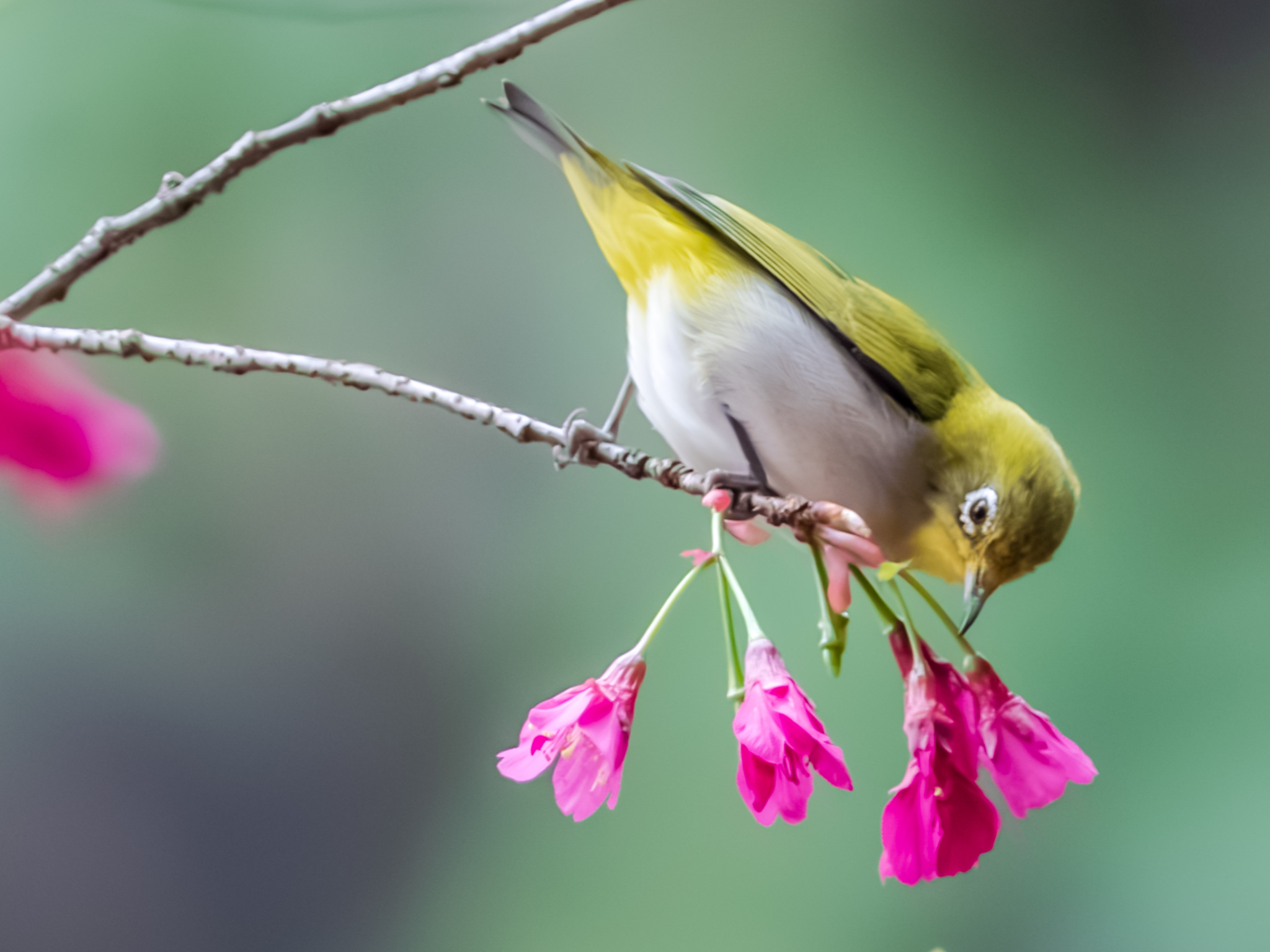 Dok trešnjini cvjetovi prekrivaju Nanchang nježnim nijansama ružičaste, mali Swinhoeov bjelooki zviždak vijuga među granama. Sa žuto-maslinastim perjem i prepoznatljivim bijelim prstenom oko oka, ovaj pernati posjetitelj zastaje kako bi srknuo nektar prije nego što ponovno poleti – dodajući prizoru dašak proljetne čarolije.