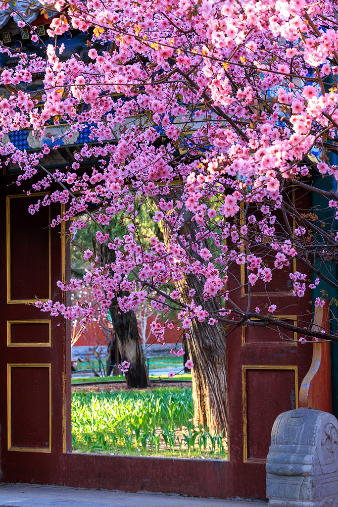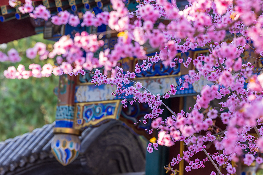 Dvostruko cvjetajuće šljive dosegnule su puni cvat duž istočnog zida parka Zhongshan u Pekingu, stvarajući zadivljujući proljetni prizor. S nježnim ružičastim laticama, ovi elegantni cvjetovi pružaju upečatljiv kontrast tradicionalnoj arhitekturi parka. Dvostruko cvjetajuća šljiva, hibridna vrsta poznata po svojoj ukrasnoj ljepoti i mirisu, dodatno obogaćuje kulturno bogatstvo koje povijesni pekinški parkovi nastavljaju nuditi.