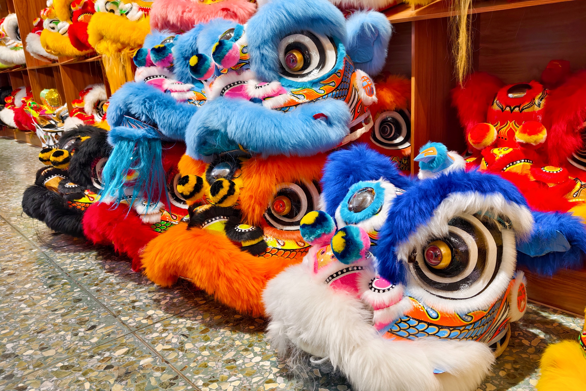 Kombinacije boja lavljih glava nadahnute su šminkom lica Liu Beija i njegovih pet hrabrih generala u kantonskoj operi, koja se temelji na kineskom klasiku “Tri kraljevstva”.