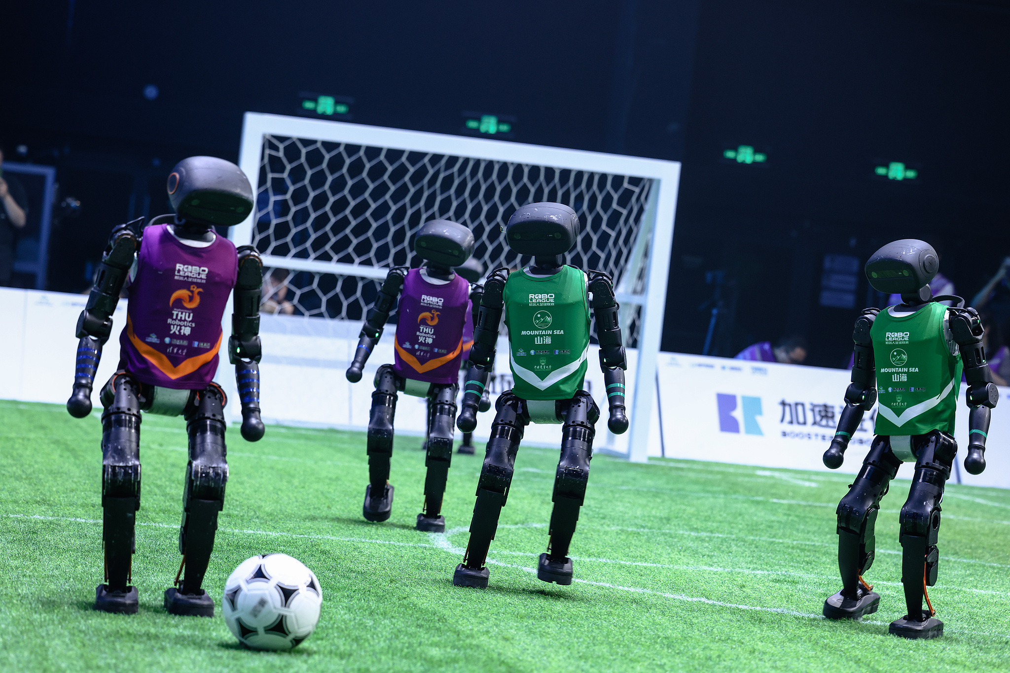 Četiri tima humanoidnih robota sučelila su se u subotu navečer u Pekingu u potpuno autonomnoj nogometnoj utakmici 3-na-3, koju je pokretala isključivo umjetna inteligencija.