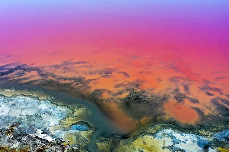 Bogat mirabilitom, solju i algama, ovaj krajolik pretvara se u kaleidoskop živopisnih nijansi ružičaste, ljubičaste i drugih boja koje se mijenjaju ovisno o svjetlu, temperaturi i vremenskim uvjetima, stvarajući prizor poput sna. Upravo zbog te posebnosti jezero je dobilo naziv „vremensko jezero“, jer lokalno stanovništvo može predvidjeti vrijeme prema boji njegove vode.