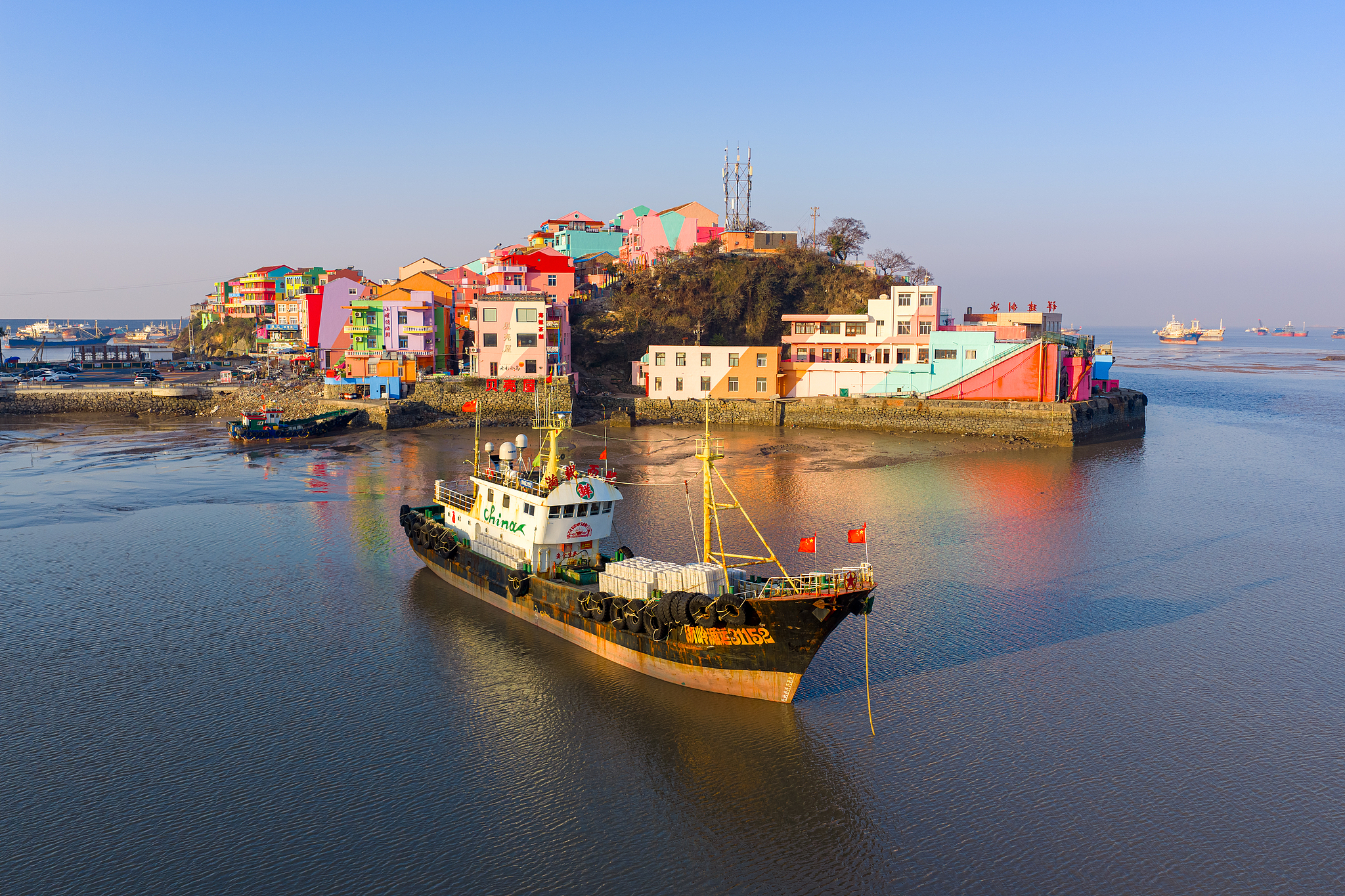 Dok se prva zlatna zraka izlaska sunca prelijeva preko horizonta i spušta na selo Xiaoruo u okolici grada Taizhoua, u istočnokineskoj pokrajini Zhejiang, mirno obalno naselje budi se iz tihog sna. Živopisno obojeni zidovi hvataju jutarnji sjaj, a njihove boje postaju sve dublje i razlijevaju se po površini vode, gdje blistavi valovi raspršuju svjetlost poput krhotina obojene glazure.