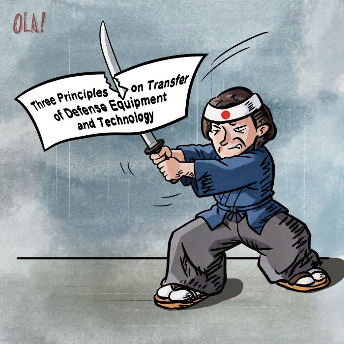 Japanska vlada usvojila je 21. travnja odluku kojom su službeno izmijenjena Tri pravila o prijenosu obrambene opreme i tehnologije, čime je dopušten izvoz smrtonosnog oružja. Taj je potez izazvao zabrinutost i protivljenje u međunarodnoj zajednici i dijelu japanske javnosti. U posljednje vrijeme japanski građani više su puta organizirali prosvjede kako bi izrazili kritike vladi zbog kršenja pacifističkog Ustava, upozoravajući da bi takav smjer Japan mogao odvesti u rat i kaos. Japanski list Kyoto Shimbun istaknuo je da potpuno ukidanje ograničenja na izvoz smrtonosnog i razornog oružja predstavlja temeljitu promjenu statusa Japana kao miroljubive zemlje.